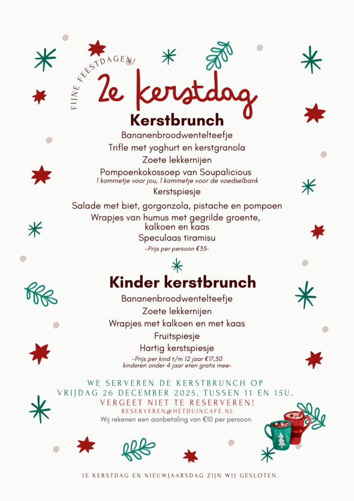 Tweede kerstdag, vrijdag 26 december 2025, serveren we een heerlijke Kerstbrunch!